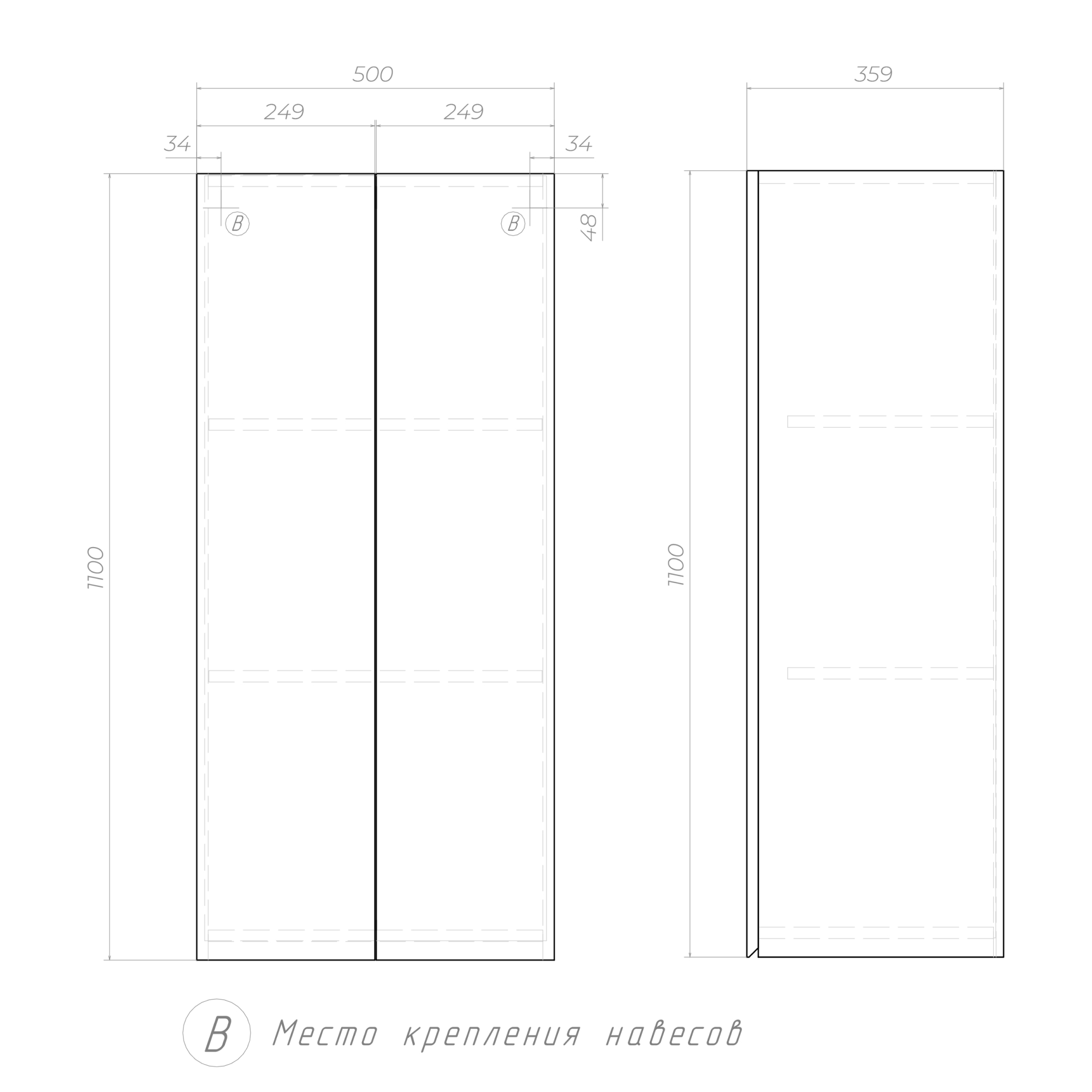 корпус шкафа, 2 дверцы, 2 полки ЛДСП, интегрированная ручка, 2 навеса