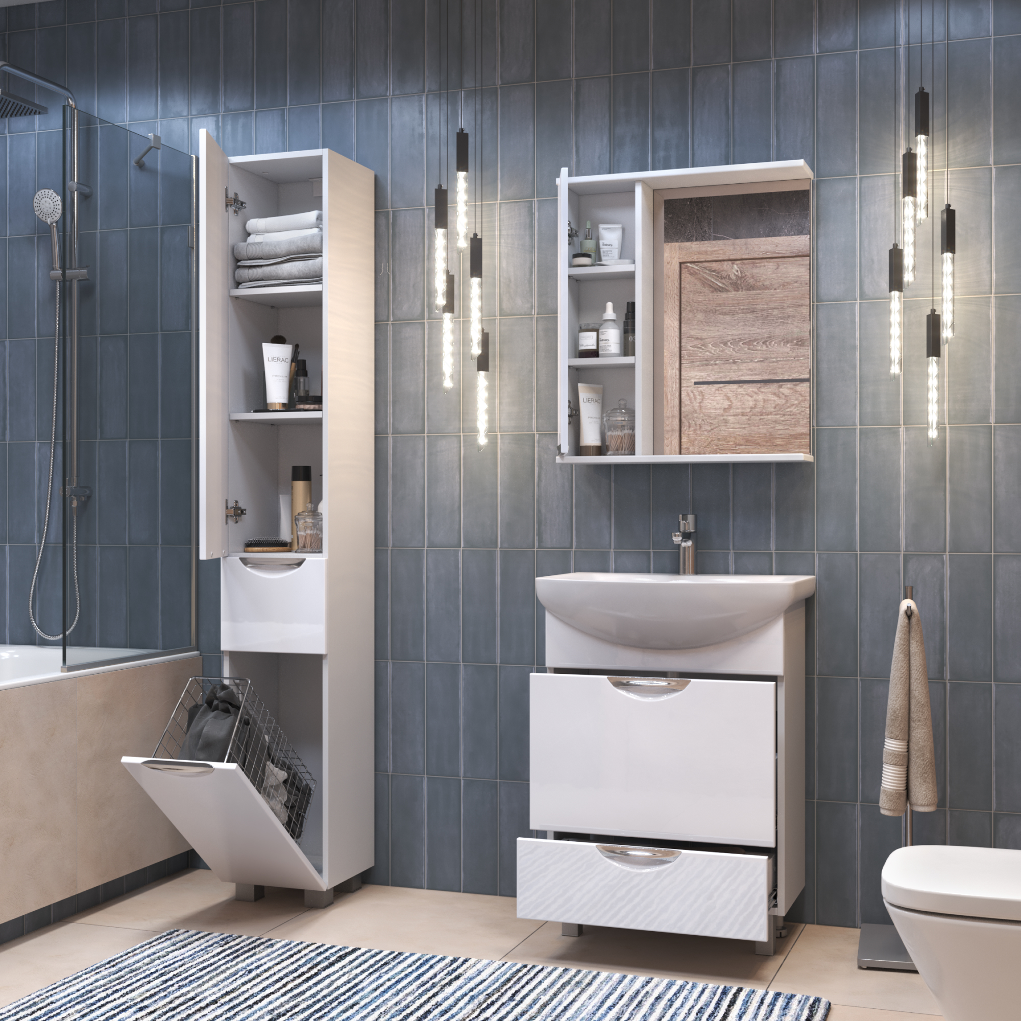 Левое/правое исполнение шкафчика; 2 полки ЛДСП;