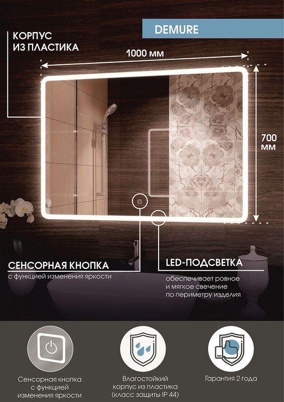 Зеркало Demure LED 1000x700