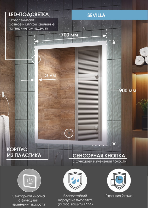 Зеркало Sevilla LED 700х900