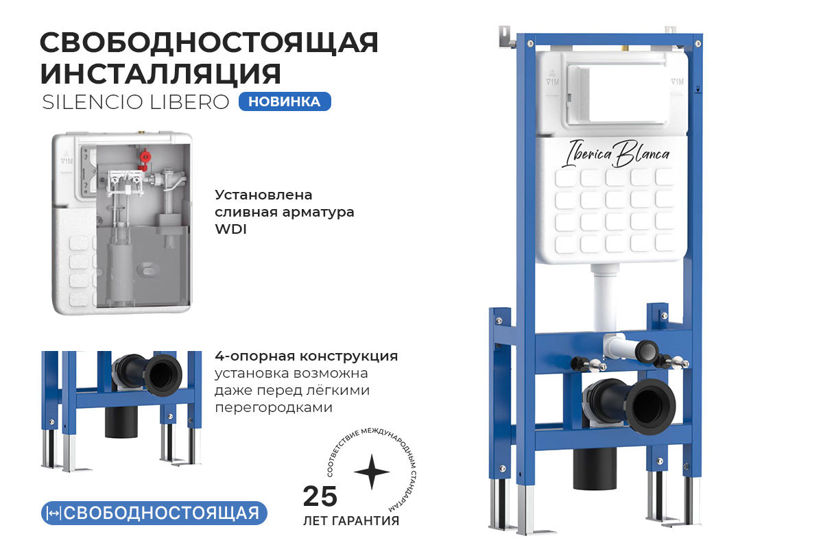 В ассортименте IBERICA BLANCA: подвесные и приставные унитазы и унитазы-компакт, биде, системы инсталляции, клавиши смыва для инсталляций, стальные ванны, душевые ограждения.