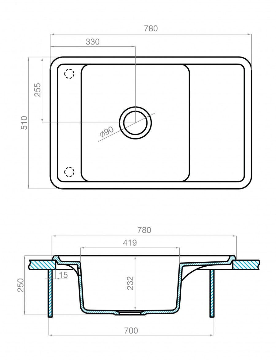 Мойка для кухни Беллис 78 780x510x250 мм, прямоуг., серый шелк